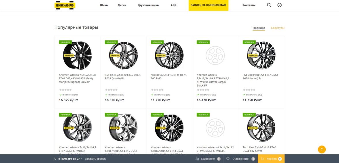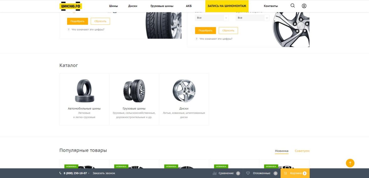 Но для главной страницы есть компонент, выводящий товары со специальной отметкой: «Спецпредложение», «Шиномонтаж в подарок».