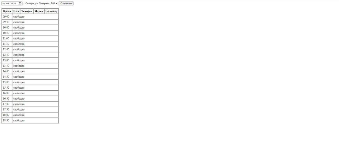 • Удобный для клиента модуль записи на нужное время. Можно выбрать пункт шиномонтажа и отменить уже назначенную запись.