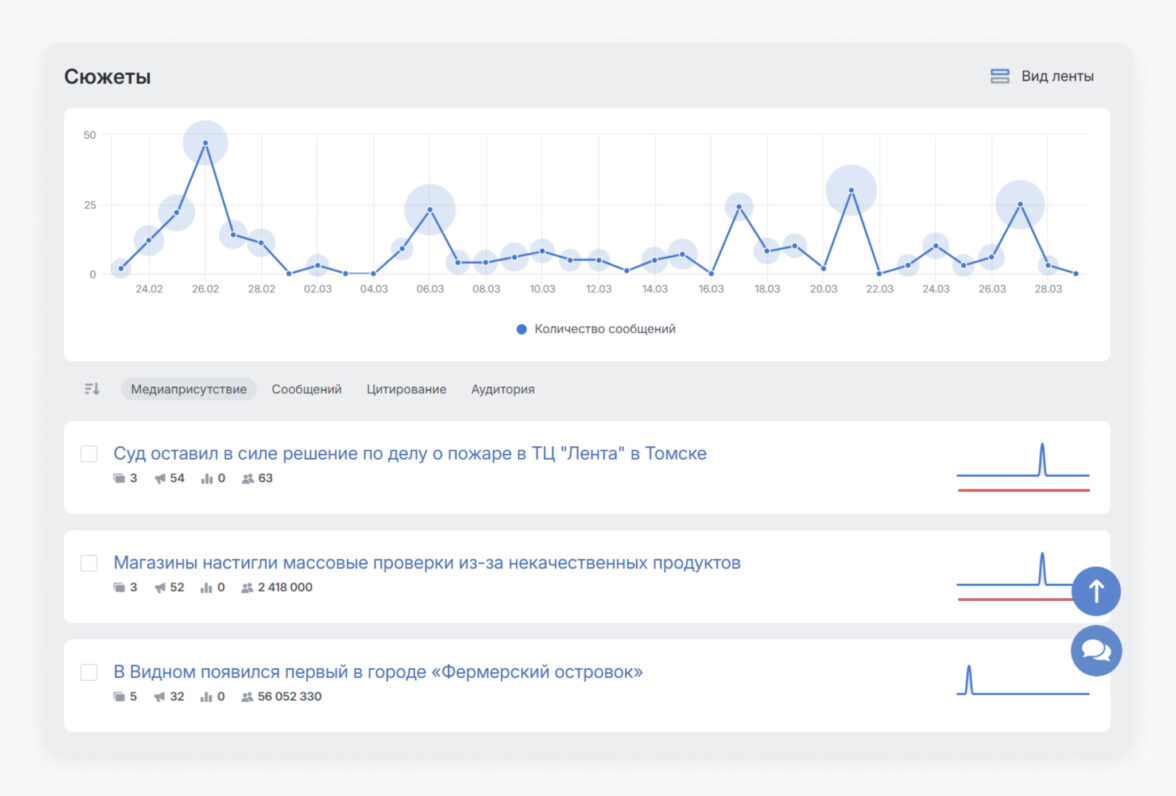 Больше не нужно переключаться между СМИ и соцсетями. Вы видите: где зародился инфоповод, как он разошёлся по разным площадкам, как аудитория отреагировала на ваши сообщения.