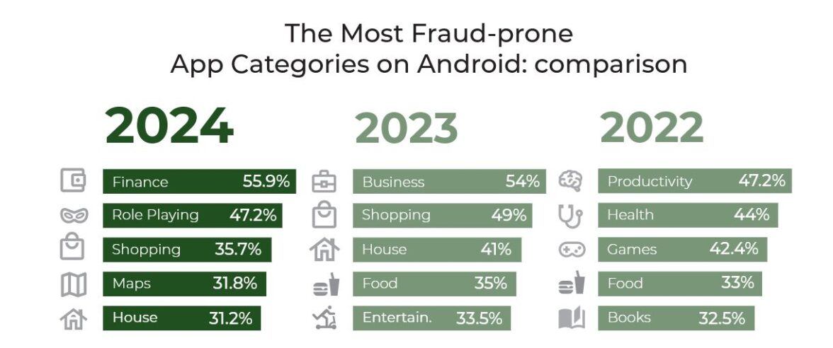 Приложениями с самой высокой долей фрода во всем мире, по оценке Fraudscore, стали финансовые приложения на Android (55,9% доля мошеннического трафика) и на iOS (61,6%).