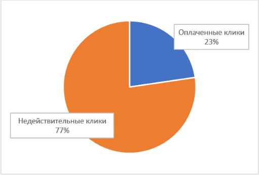 Ниже на диаграмме видно, в некоторых тематиках доля недействительных кликов в разы превышает долю оплаченных:
