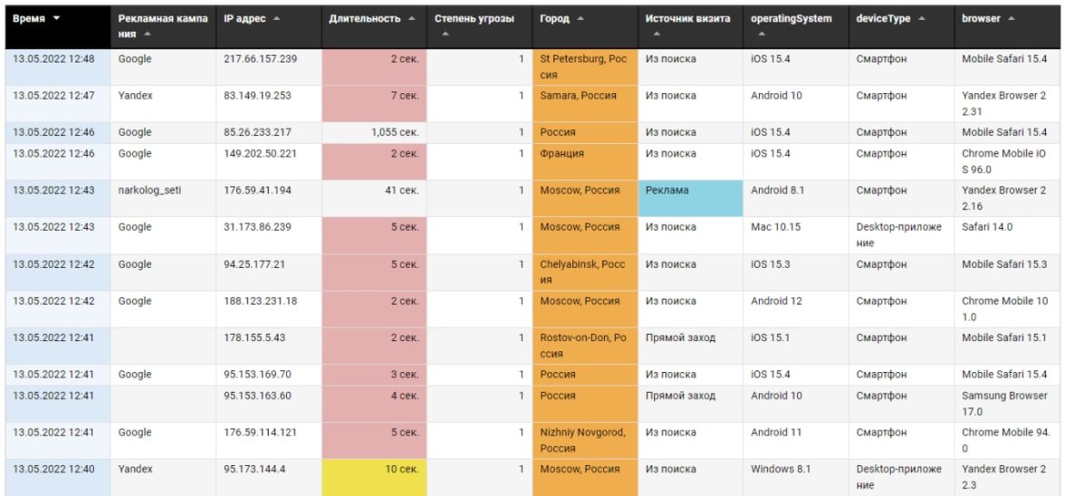 Как правило, мы считаем, что встроенного в Директ антифрода вполне достаточно. После того, как мы прошлись по всем пунктам, разговор с клиентом переходит в плоскость маркетинга и стимулирующих мероприятий. Однако, недавно для компании из высококонкурентной тематики мы дополнительно подключили сторонний сервис. Этот сервис призван отсеивать недобросовестные клики тех, кому удаётся обойти антифродовую систему Яндекса. Мы подключили сервис ClickFraud, который собирает данные о подозрительных визитах на сайт. В Метрике создаётся сегмент пользователей из данных Кликфрода, который используется в корректировках ставок.