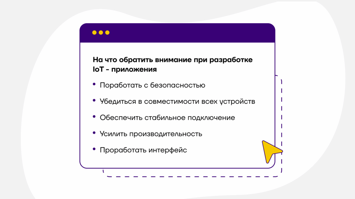 Продуманный интерфейс. Интернет вещей максимально упрощает быт человека, а вот про интерфейсы почему-то все забывают. Пользователь не должен задумываться, как воспользоваться функцией — все должно быть интуитивно понятно. Чтобы минимизировать сложности, выбирайте подрядчиков с дизайнерами в команде. Они спроектируют максимально дружелюбный интерфейс.