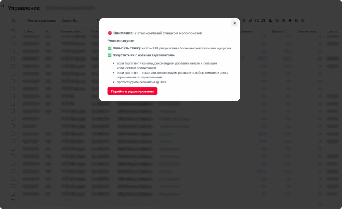 Платформа подходит тем, кто работает с объёмами: десятками кампаний, разными форматами объявлений, большими бюджетами. Чтобы не менять кампании вручную, в PRO есть готовые Excel-шаблоны, массовое редактирование и автоправила. Они автоматически останавливают неэффективные объявления или повышают ставки там, где есть результат.