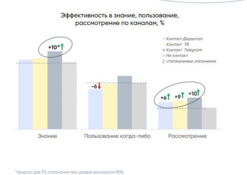 Mindscapes by i.com и «Т-Банка» зафиксировали, что для дебетовой карты реклама в Telegram обеспечила максимальный эффект по показателям «знание» и «рассмотрение» бренда к покупке. При этом телерекламная кампания обеспечила лучшую сохранность информации о предложении в памяти аудитории.