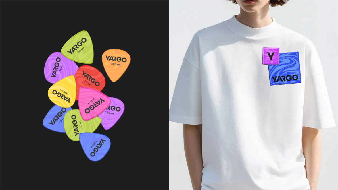 Ярго создает атмосферу, настроение, волны музыки в стиле эбру, проникающие в нашу жизнь. Мы придумали мерч, который передает эту чувственную эстетику и еще ярче подчеркивает мир «до» и «после». В коммуникациях мы предложили использовать лайфстайл-стилистику, фото с людьми, использующими продукцию YARGO или товар в домашнем интерьере с ярким фоном или элементами одежды. Также мы собрали правила использования фирменного стиля для головокружительного путешествия в мир творчества и музыки.