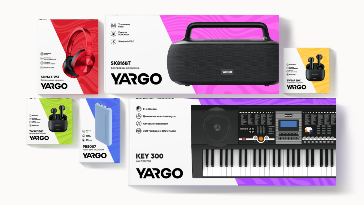 Лучшее сочетание функционала и эмоции от покупки.Изучив аудиторию, мы выяснили, основные покупатели — начинающие музыканты и любители, они готовы открывать новое и экспериментировать. Суть бренда — в предложении лучшего сочетания функционала и эмоции от покупки, его характер — яркий и привлекающий внимание, понятный и доступный аудитории. Наша команда придумала емкое название [Yargo] — неологизм от русского «ярко». Короткое, прямолинейное и динамичное имя, которое рассказывает про яркие эмоции, веселье и удовольствие от бренда. Название логично дополнено логотипом. Он запоминающийся и устойчивый, с динамичной лигатурой AR, сочетающий классику и энергию, как и весь бренд YARGO*.