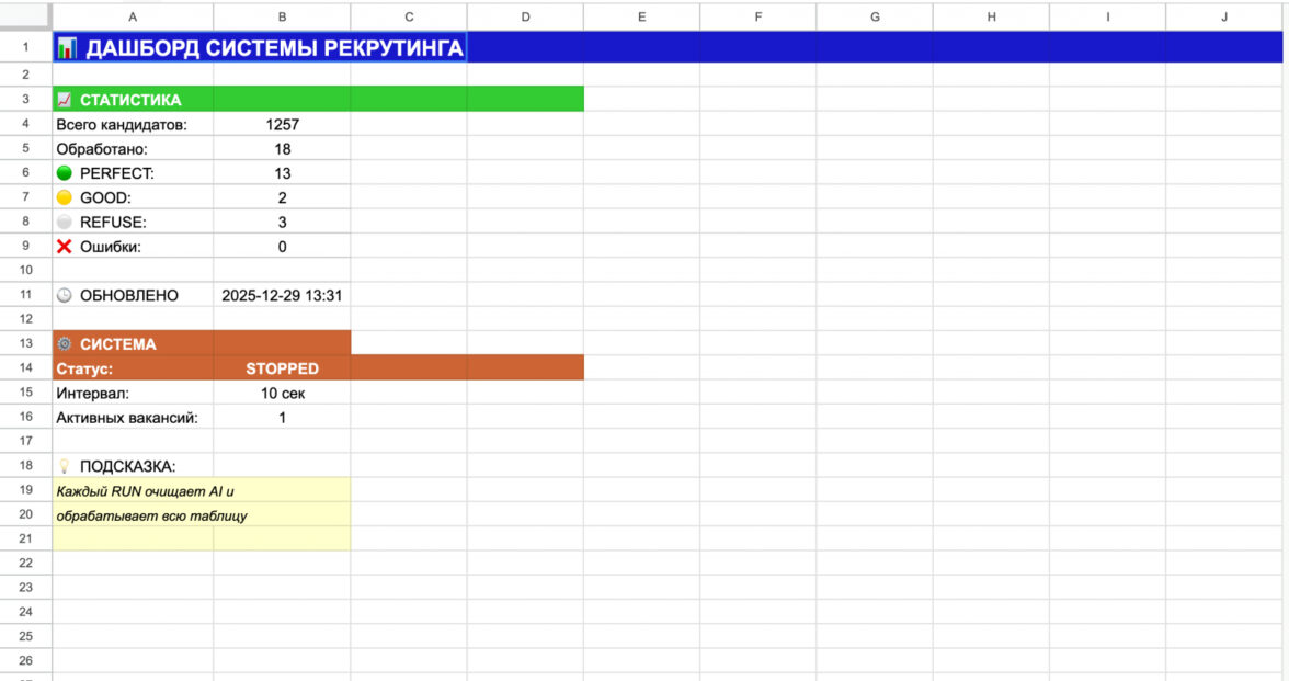 Мы автоматизировали обработку откликов с hh.ru и Avito, чтобы ускорить найм и убрать ручную рутину на первичном отборе. Система автоматически забирает отклики по API, извлекает расширенный набор данных по кандидатам и сохраняет их в единую таблицу без дублей.