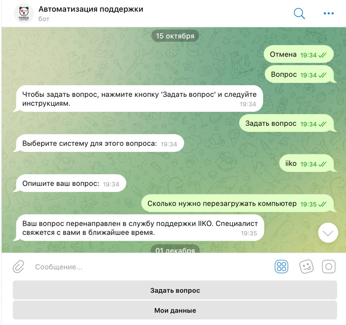 Мы автоматизировали первую линию поддержки, чтобы пользователи быстрее получали ответы, а команда саппорта не тратила время на типовые запросы. Задачу решили через Telegram-бота, который принимает обращения, ищет релевантные ответы в базе знаний и сразу возвращает их пользователю.
