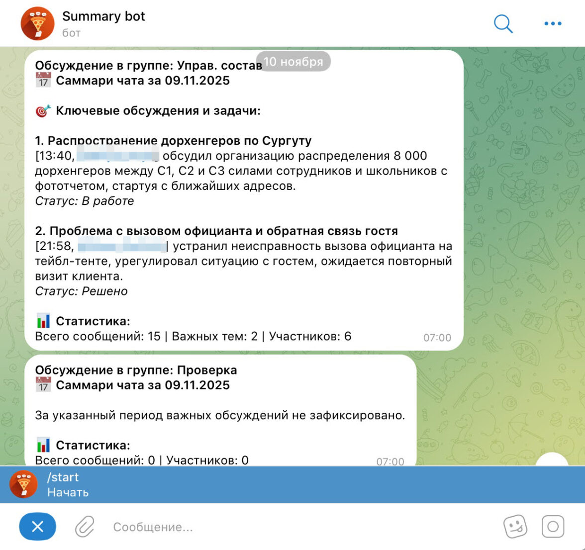 суммаризируют рабочие чаты и формируют структурированные отчёты для руководителей,