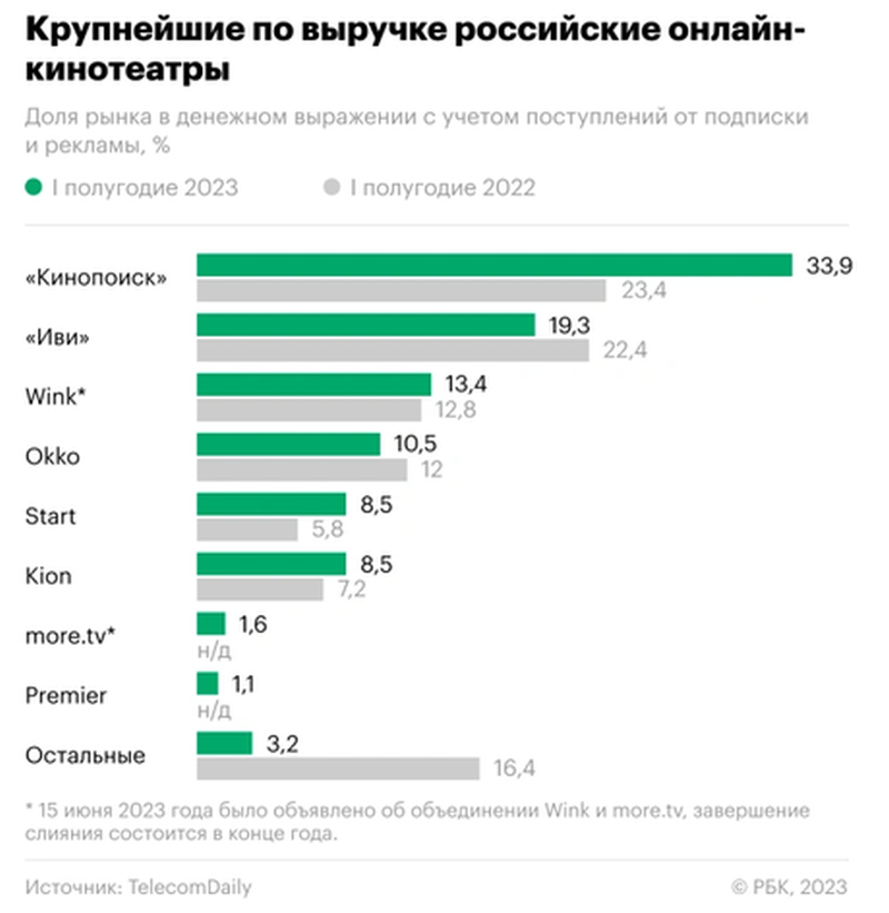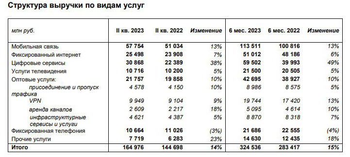 Несмотря на то, что мобильная связь имеет самую высокую долю в выручке «Ростелекома», в первые шесть месяцев 2023 года направление цифровых сервисов стало самым быстрорастущим по выручке (рост на 49% к первому полугодию 2022 года, до 59,5 млрд рублей). По выручке цифровые сервисы превзошли услуги по фиксированному интернету (51 млрд рублей). IPTV и онлайн-кинотеатр принесли компании 21,5 млрд рублей (+5% к 2022 году).