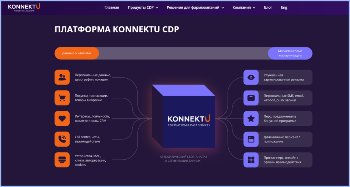 KonnektU — гибкое и более нишевое решение, которое позволяет максимально кастомизировать под себя сервис. С одной стороны, функциональность платформы схожа с MindBox, есть возможность реализовать уникальные более сложные и кастомные задачи с помощью команды поддержки.
