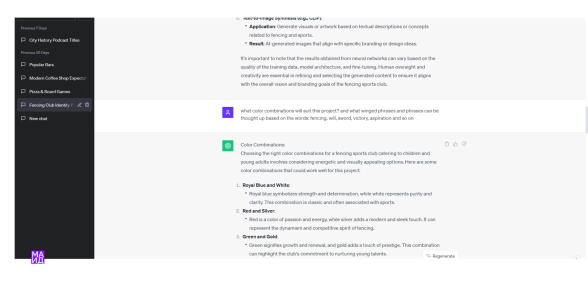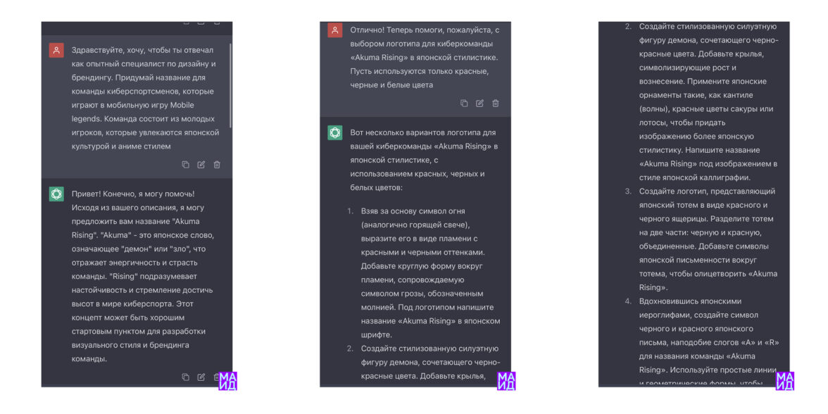 Курс «Нейросети для дизайна» построен по принципу передачи знаний и закрепления навыков. Работы магистрантов показывают успехи. Мы учимся общаться с новой технологией — новым инструментом — с чат-ботом.
