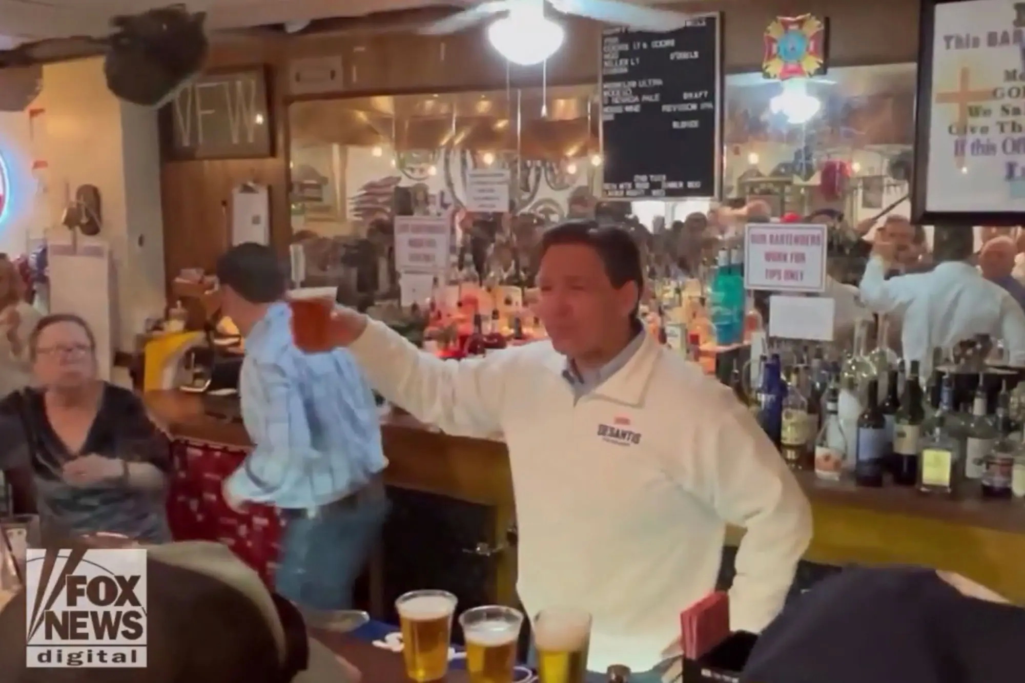 Забравшись за барную стойку, Десантис решил поиграть в бармена и начал разливать пиво своему боевому электорату. Недолгую карьеру бармена Десантис сопроводил пивной шуткой. «Хочу, чтобы вы просто знали: я налью вам любое пиво, кроме Bud Light», — заявил он посетителям бара. Шутка зашла и вызвала восторженный гогот в зале.