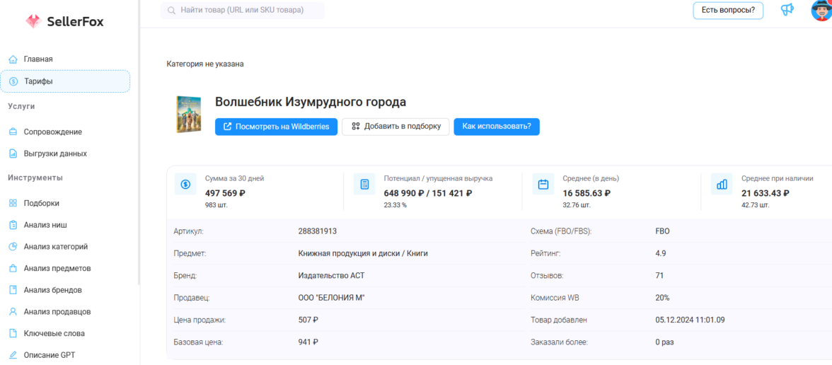 По данным сервиса внешней аналитики маркетплейсов SellerFox