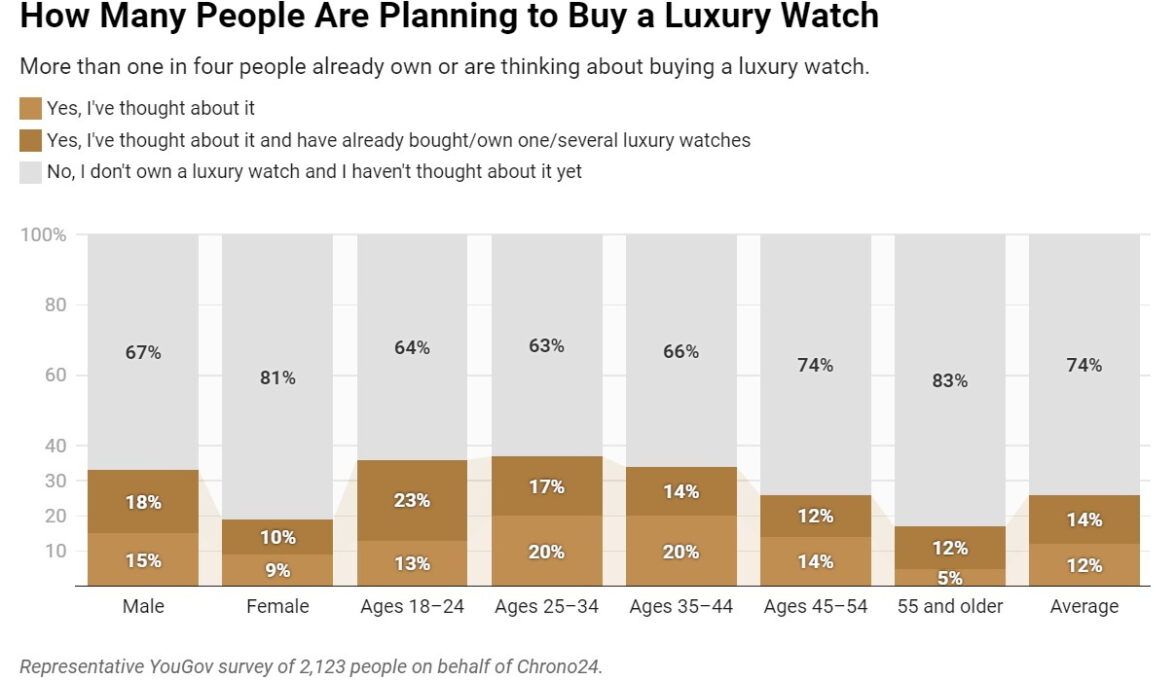 Опрос по заказу Chrono24 был проведен германским подразделением YouGov c 30 июля по 1 августа 2024 года, в нем приняло участие 2123 человека.