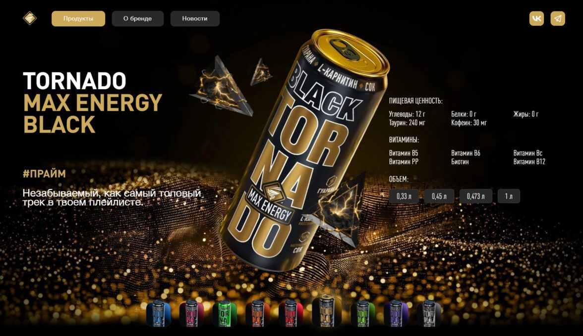 Бренд TORNADO MAX ENERGY завершил 2025 год обновлением продуктового сайта. Это не только технический апдейт и смена визуалов, а переосмысление цифрового присутствия: сайт стал новой точкой входа в мир бренда — более динамичной, визуально цельной и ориентированной на диалог с зумерами.