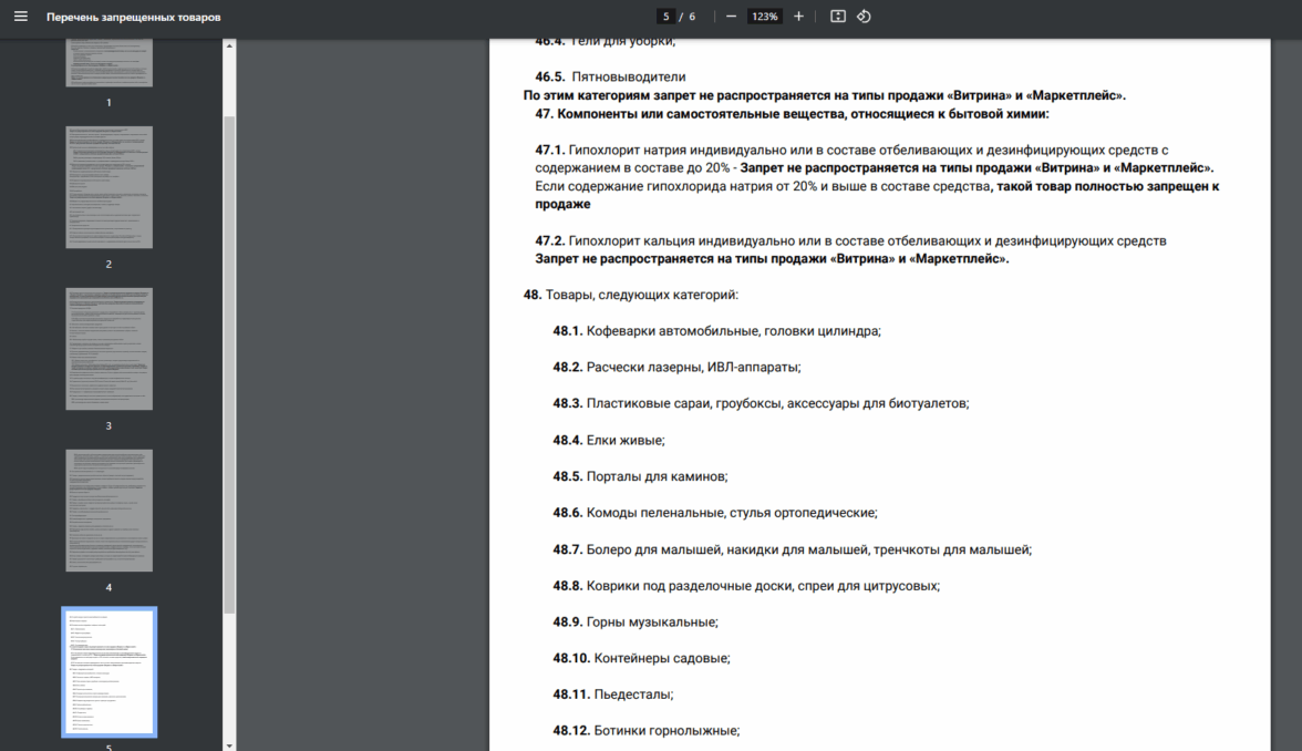 2. Убедитесь, что ваша продукция не попадает в список товаров, запрещенных для продажи со складов WB.