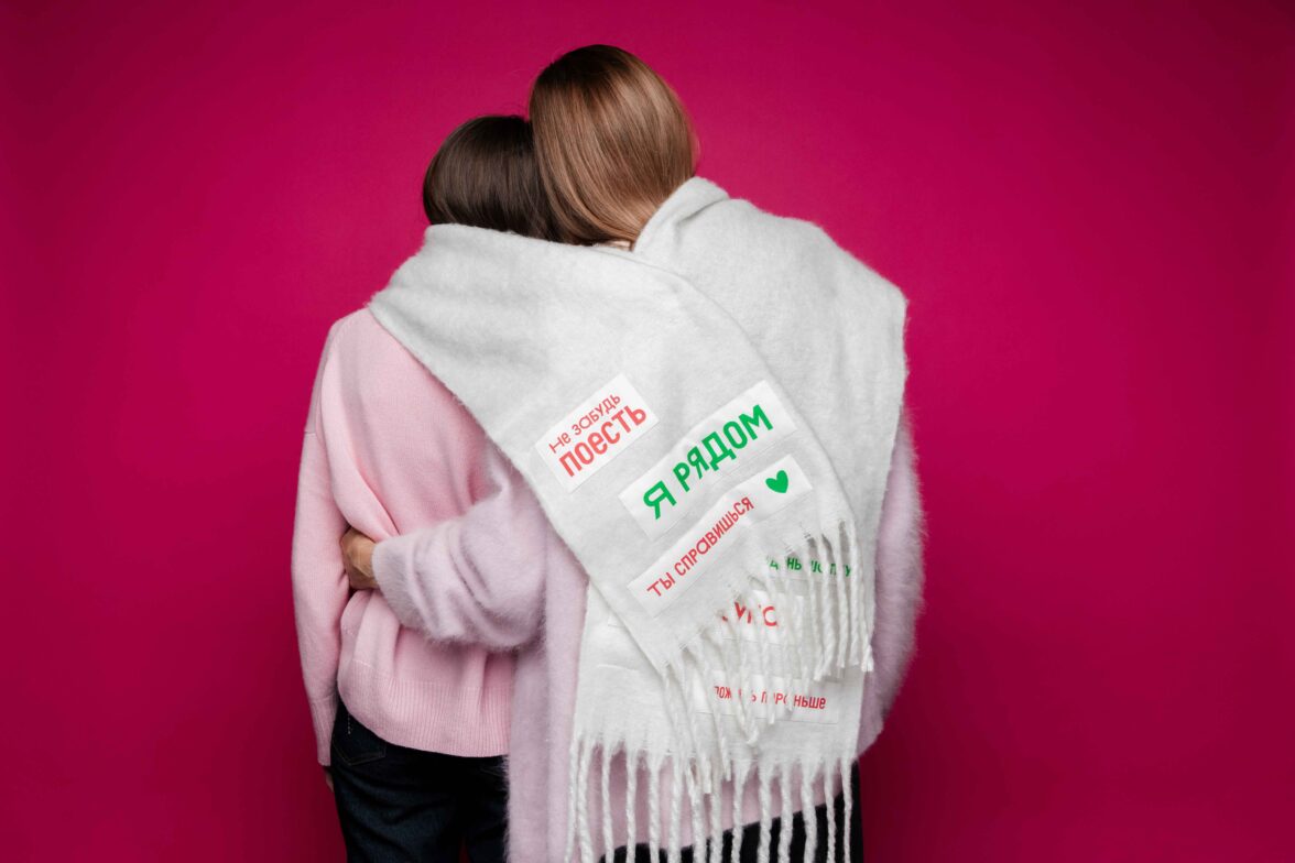 ВкусВилл в благодарность мамам выпустил шарфы, отражающие житейскую мудрость и материнскую заботу. На нашивках — напоминания позаботиться о себе («Надень шапку», «Поешь супа», «Ложись пораньше») и слова поддержки, которые порой так важно услышать («Я рядом», «Ты справишься»).