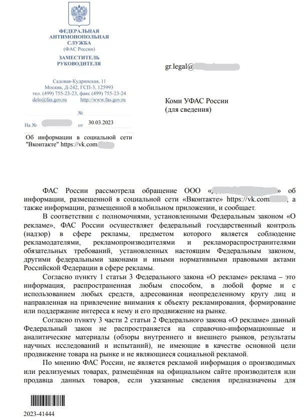 В данной статье рассмотрим два примера официальных ответов ФАС по запросам от двух кампаний, так как случаи по ним закрывают практически все нужные нам вопросы по данной теме публикации: