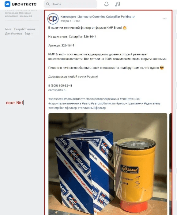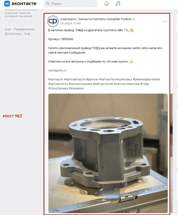 Пост 1. В нем присутствует описание карточки товара, упоминание бренда, артикула и прочей информации с призывом обратиться и обеспечения доставки товара. Подобные посты в том или ином виде присутствует в большинстве постов, которые ведут интернет-магазины либо производители в своих аккаунтах соцсетей, поэтому он является (как и нижеуказанные) репрезентативным для получения экспертизы из ФАС.