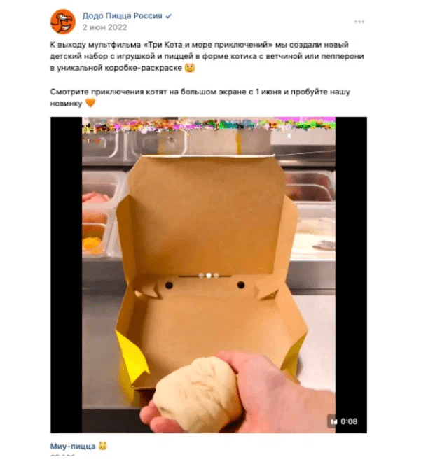 Призыв к действию насчет конкретного товара — пицца Миу