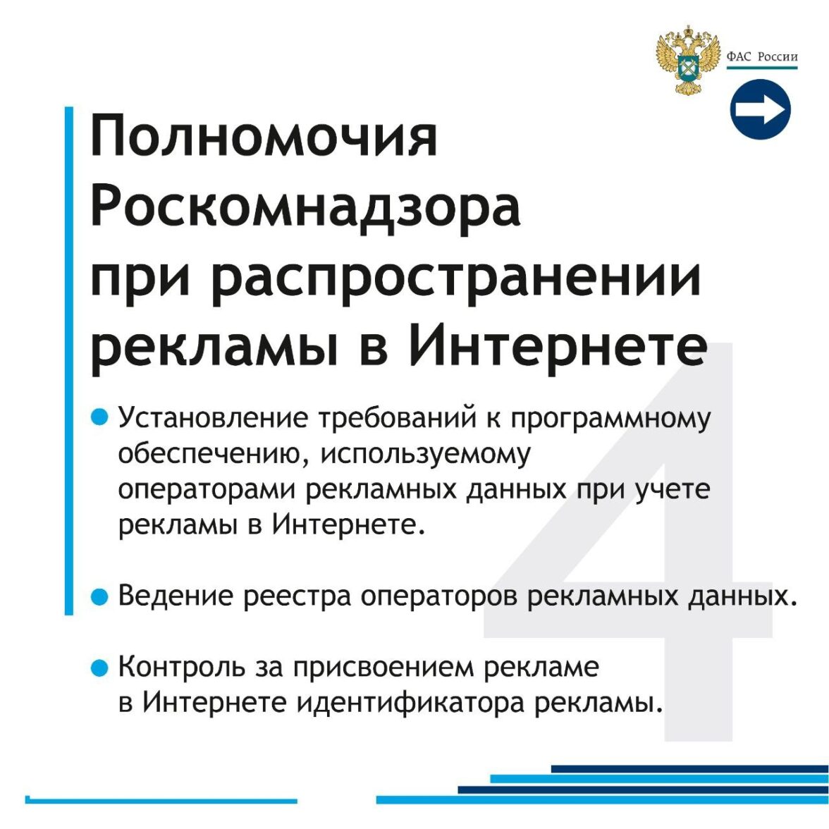 Согласно закону, именно ФАС отвечает за то, что можно считать рекламным материалом, а что нет. ФАС требует наличия в рекламном материале наличия слова «Реклама» и название юридического лица исходного рекламодателя. А Роскомнадзор уже обеспечивает контроль маркировки рекламного материала непосредственно токеном (erid), который участники рынка должны получать в ОРД (оператор рекламных данных) для обеспечения прозрачности рекламных схем и склейки рекламных цепочек в ЕРИР (единый реестр интернет-рекламы).