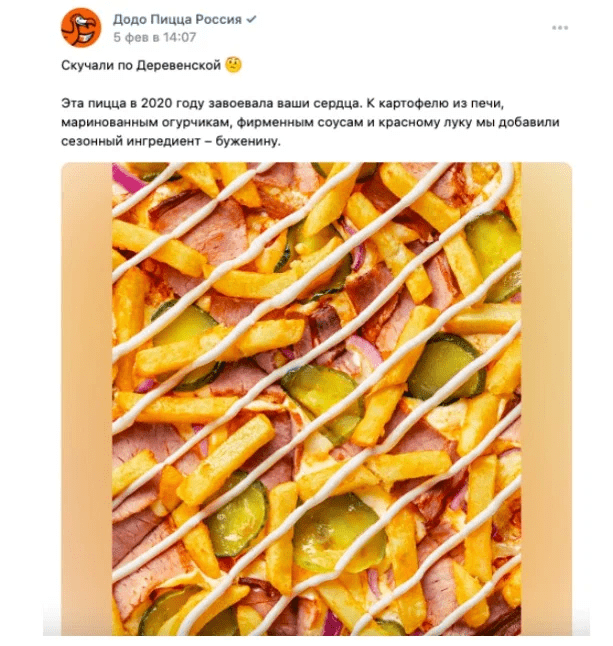 Упоминание про конкретный товар — пицца Деревенская