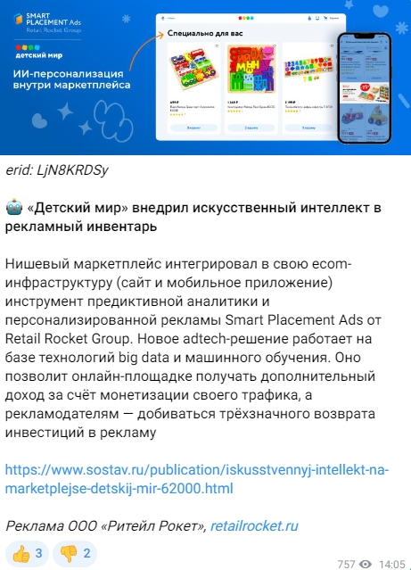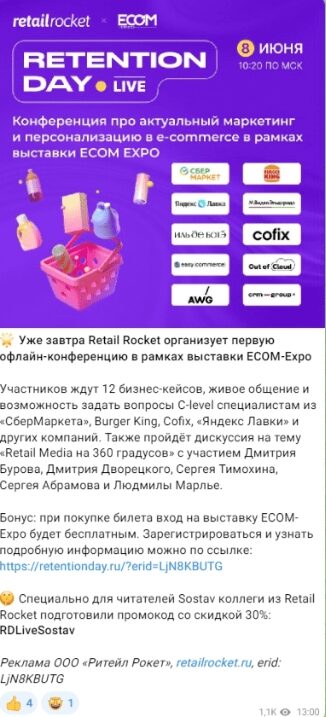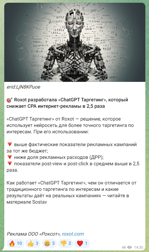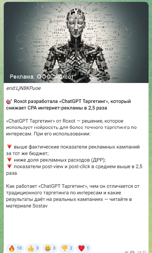 Реклама. ООО «Ромашка». erid: xxxx указать в следующем посте.