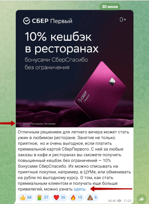 Все атрибуты маркировки прописаны в следующем посте. Рекомендация такого размещения атрибутов маркировки озвучена непосредственно Роскомнадзором для данного случая (кружок в телеграм).