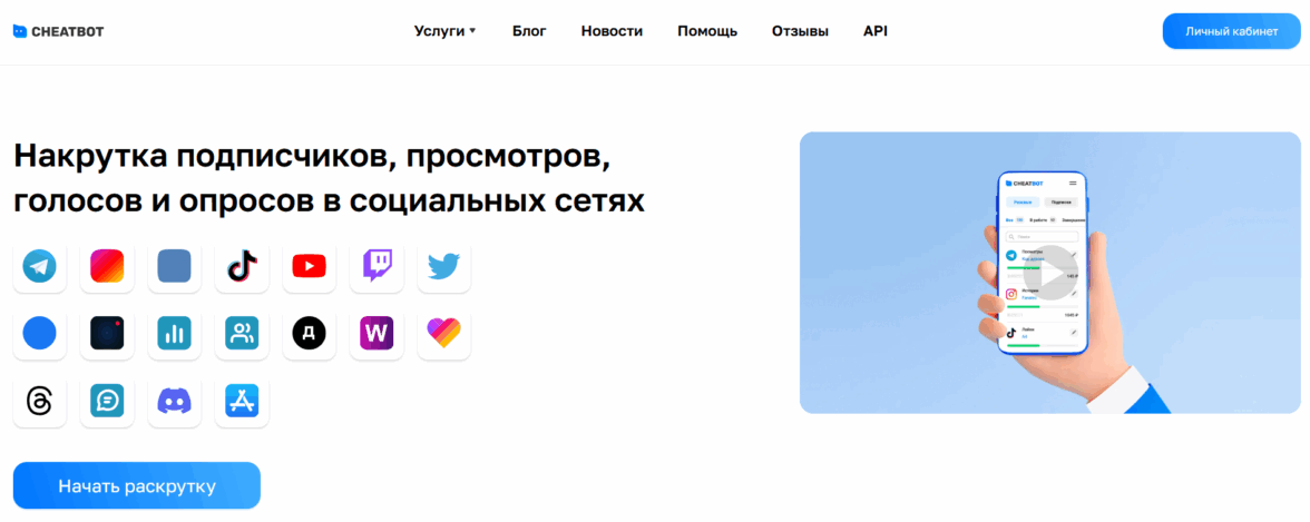 Это онлайн-площадка, созданная для комплексной и безопасной раскрутки профилей в соцсетях и мессенджерах. Сервис помогает быстро поднять активность на постах, что влияет на их попадание в топ и повышает вероятность появления в рекомендациях. CheatBot предоставляет возможность не только разово заказать лайки и просмотры для постов, но и настроить автопросмотры или автолайки, чтобы каждый новый пост автоматически получал активность. В личном кабинете пользователи управляют скоростью, количеством и параметрами накрутки, отслеживают статус задач и корректируют стратегию продвижения. Важной особенностью является безопасный хороший метод работы — все заказы выполняются анонимно, что исключает санкции со стороны платформы.