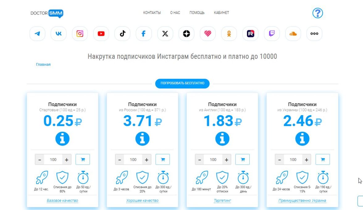 Doctorsmm — один из ведущих сервисов, зарекомендовавший себя как надежный поставщик активно развивающейся аудитории. Он предлагает качественную накрутку подписчиков, лайков и просмотров, при этом соблюдая все стандарты безопасности Instagram*. Сервис отличается стабильной работой и быстрой доставкой заказов.