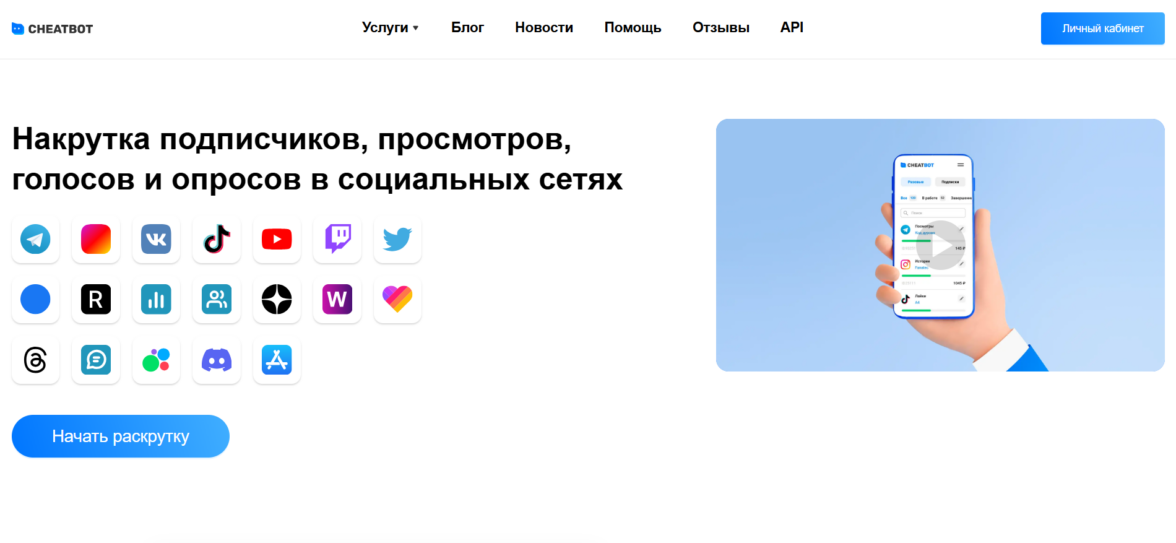 Это автоматизированная платформа для накрутки подписчиков, лайков и просмотров в Лайке и других социальных сетях. Сервис ориентирован на быстрое исполнение заказа и не требует каких-либо серьезных усилиями со стороны пользователя. Он предлагает простую систему услуг и гибкие тарифы, подходящие как для начинающих блогеров, так и для опытных пользователей. Cheatbot акцентирует внимание на скорости выполнения заказов и доступности, что делает его популярным среди тех, кто стремится быстро увеличить видимость аккаунта.