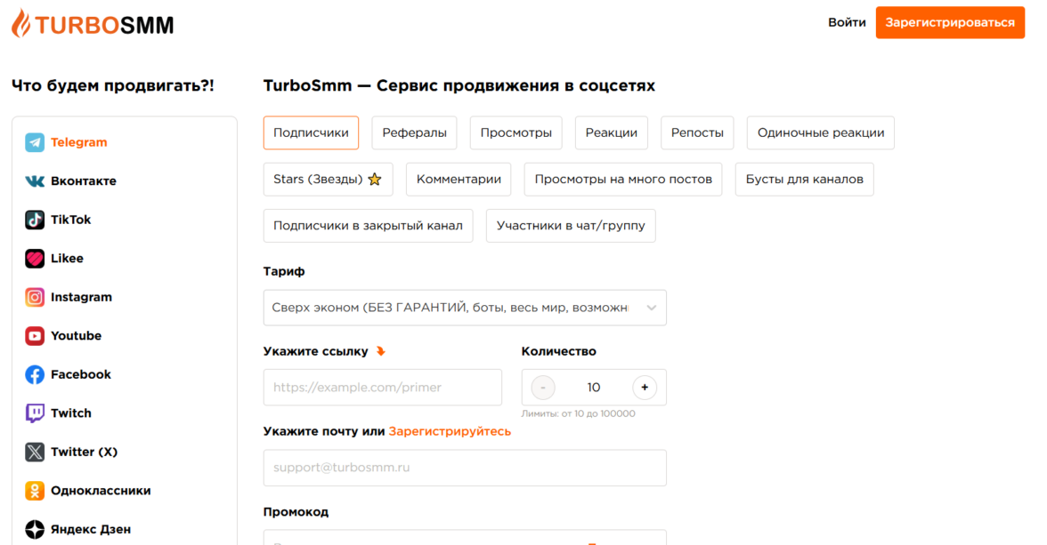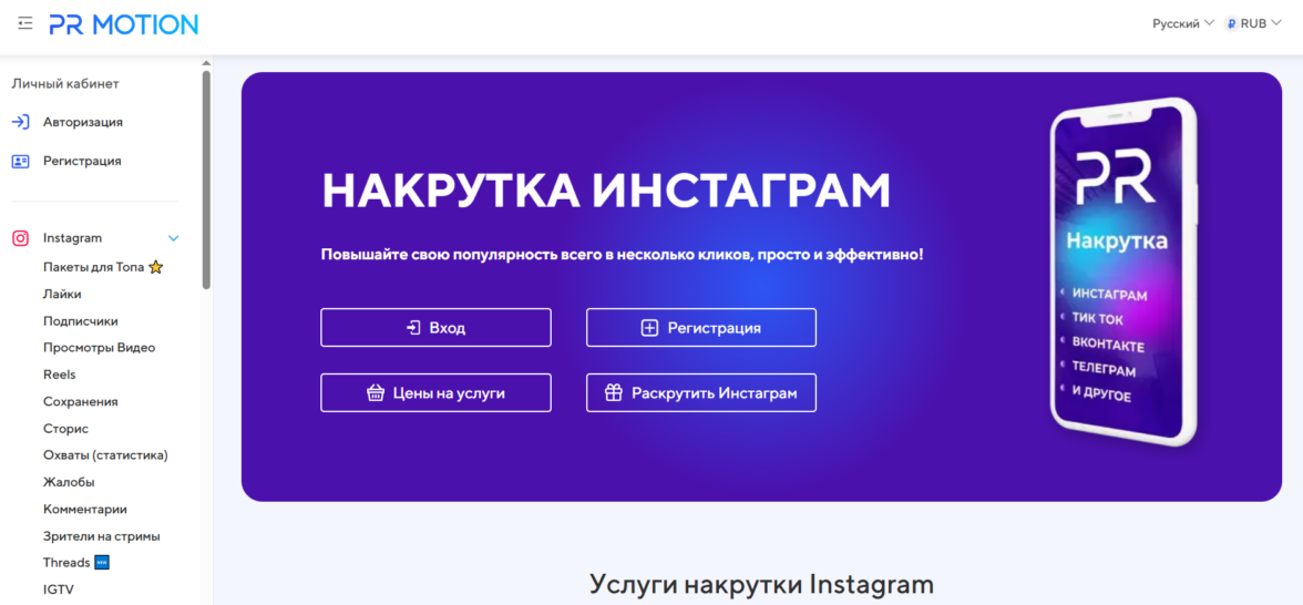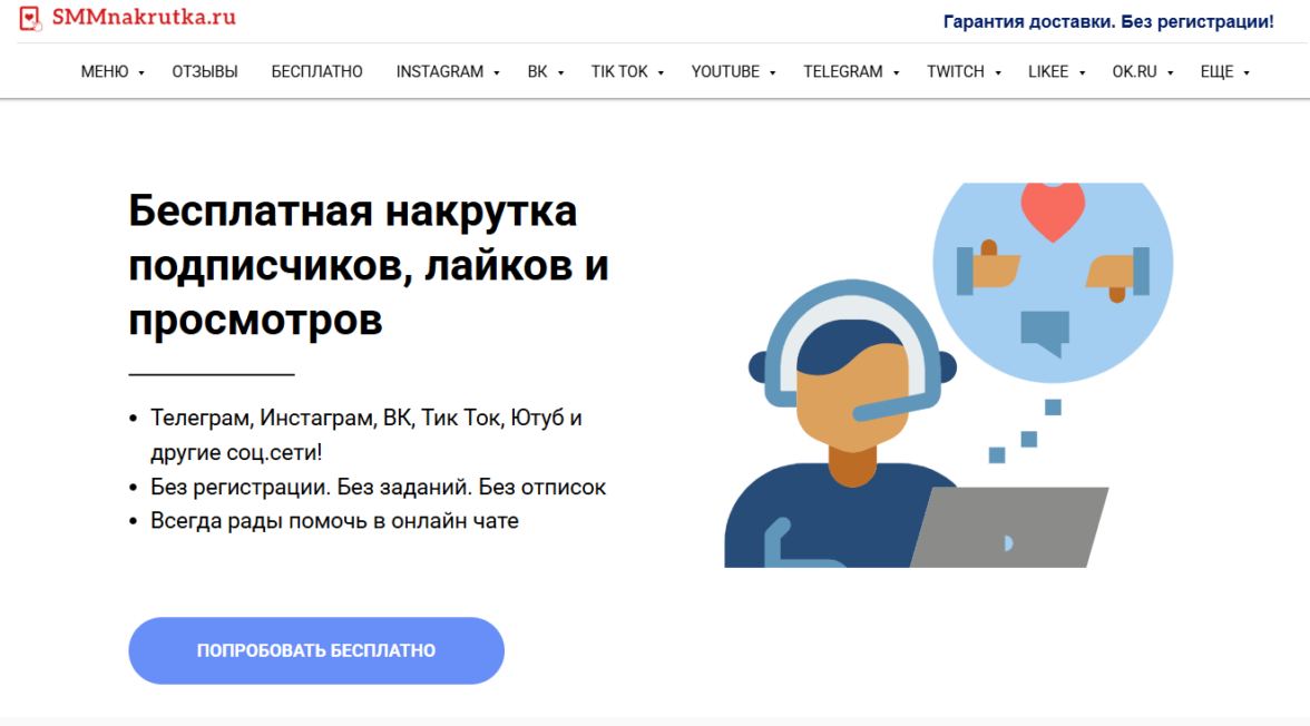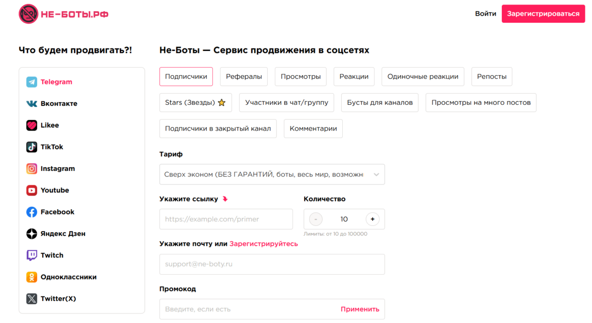 Бесплатный доступ: до 50 бесплатных лайков или подписчиков при регистрации.