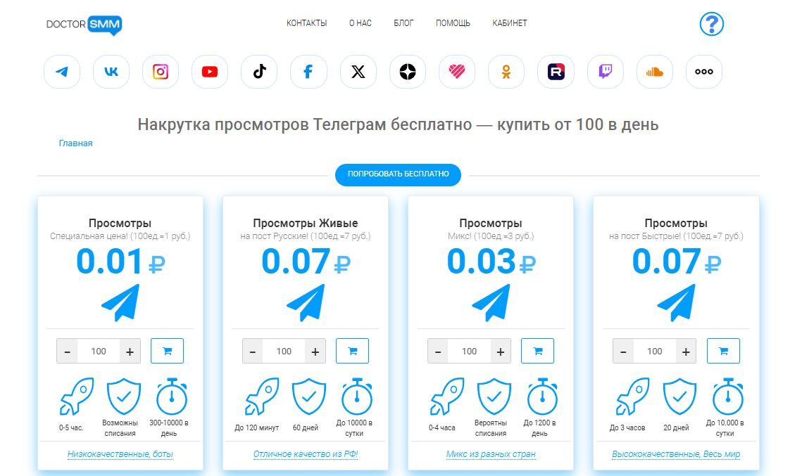 просмотров для Телеграм-каналов.