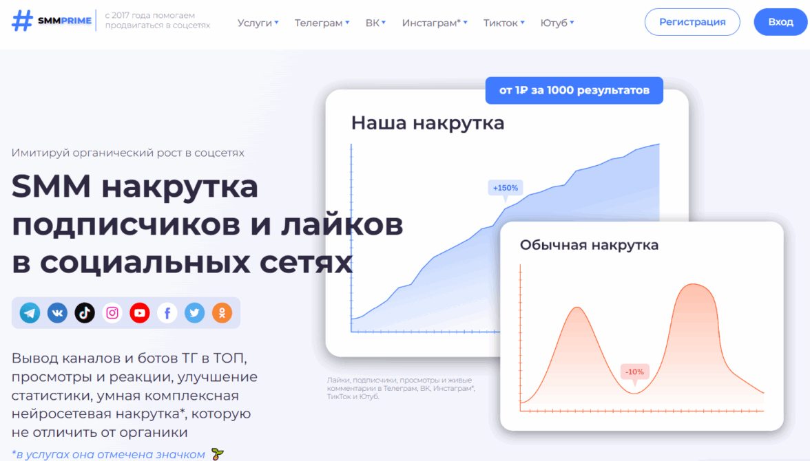 SmmPrime — профессиональный сервис, предлагающий не только накрутку, но и аналитику для оценки эффективности продвижения.