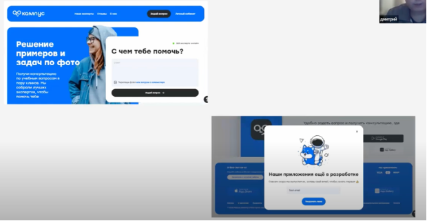Еще один пример. В период пандемии нам было интересно протестировать сервис, помогающий школьникам делать домашнее задание и упрощающий жизнь родителей. Такой сервис требует продуманной внутренней части, поэтому мы ограничились только посадочной страницей, тестами трафика и продаж.