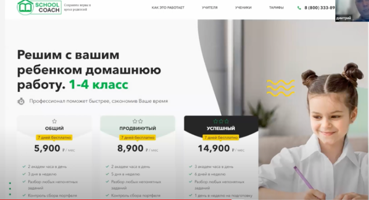 Мы запустили посадочную страницу, опубликовали набор тарифов и пакетов, разделили школьников на 3 группы, закупили трафик и провели тесты. Всего за 1 месяц проект позволил нам протестировать основные каналы трафика, его объем. Кроме того, мы пообщались с реальными родителями, готовыми использовать такой продукт, довели определенное количество лидов до продаж и получили первичные цифры по потенциальной юнит-экономике такого сервиса.