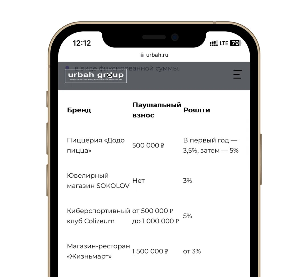 Таблица из статьи: «Как купить франшизу и не разориться»