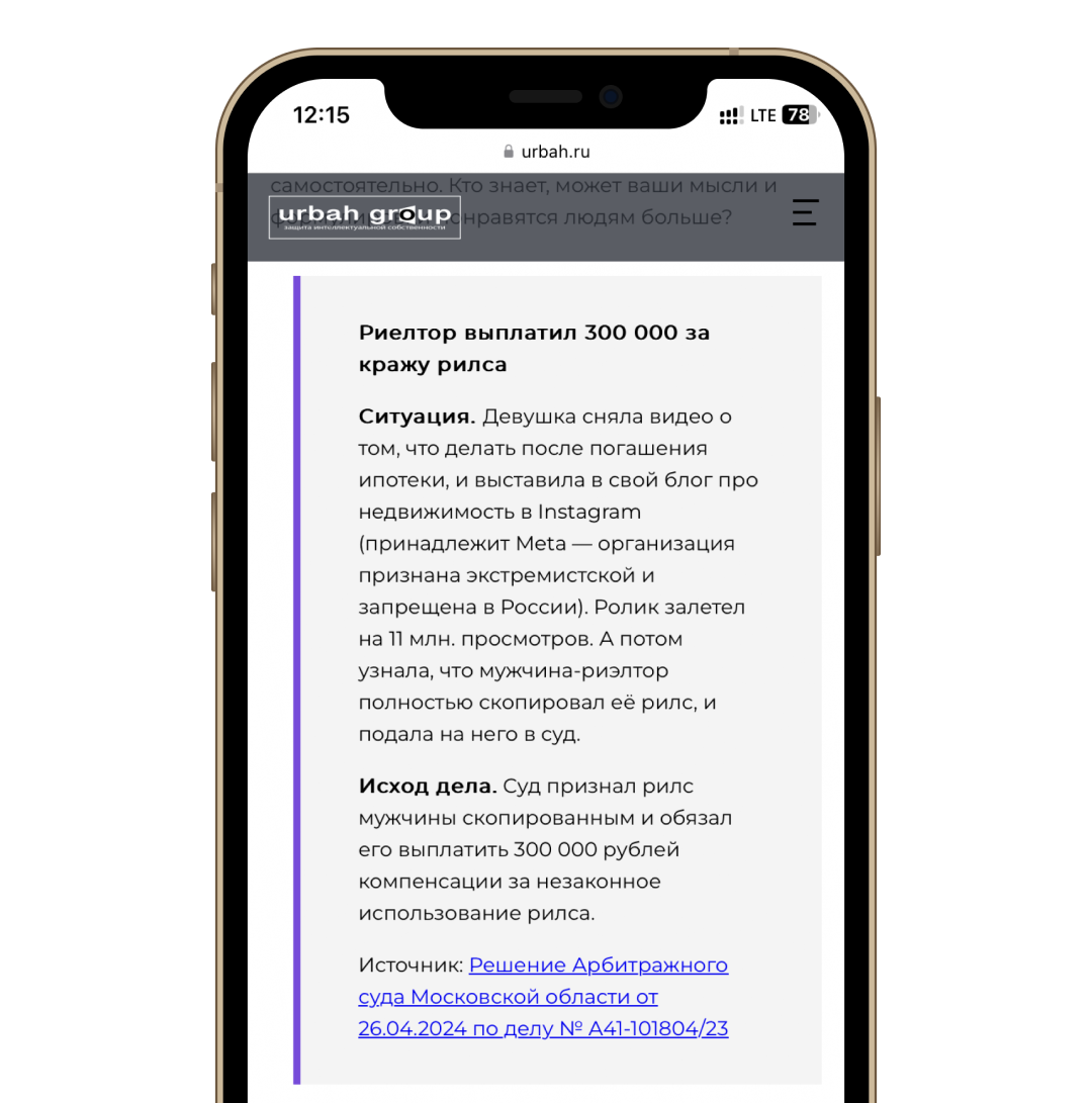 Пример из судебной практики в статье: «Гайд для блогеров: как защитить свой контент»