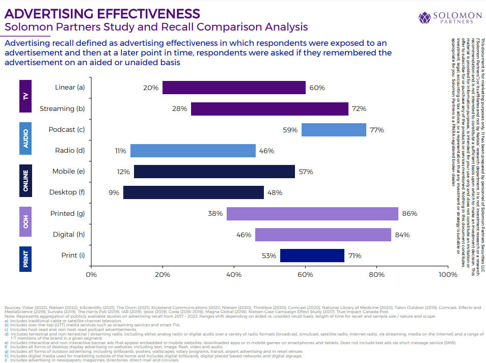 «Сравнительные данные демонстрируют способность наружной рекламы привлекать потребителей способом, который обычно превосходит возможности конкурирующих медиа, и маркетологи должны учитывать эту эффективность в своих медиапланах», — прокомментировал исследование Марк Бойдман, партнер и глава инвестиционно-банковской группы СМИ и развлечений, Solomon Partners.