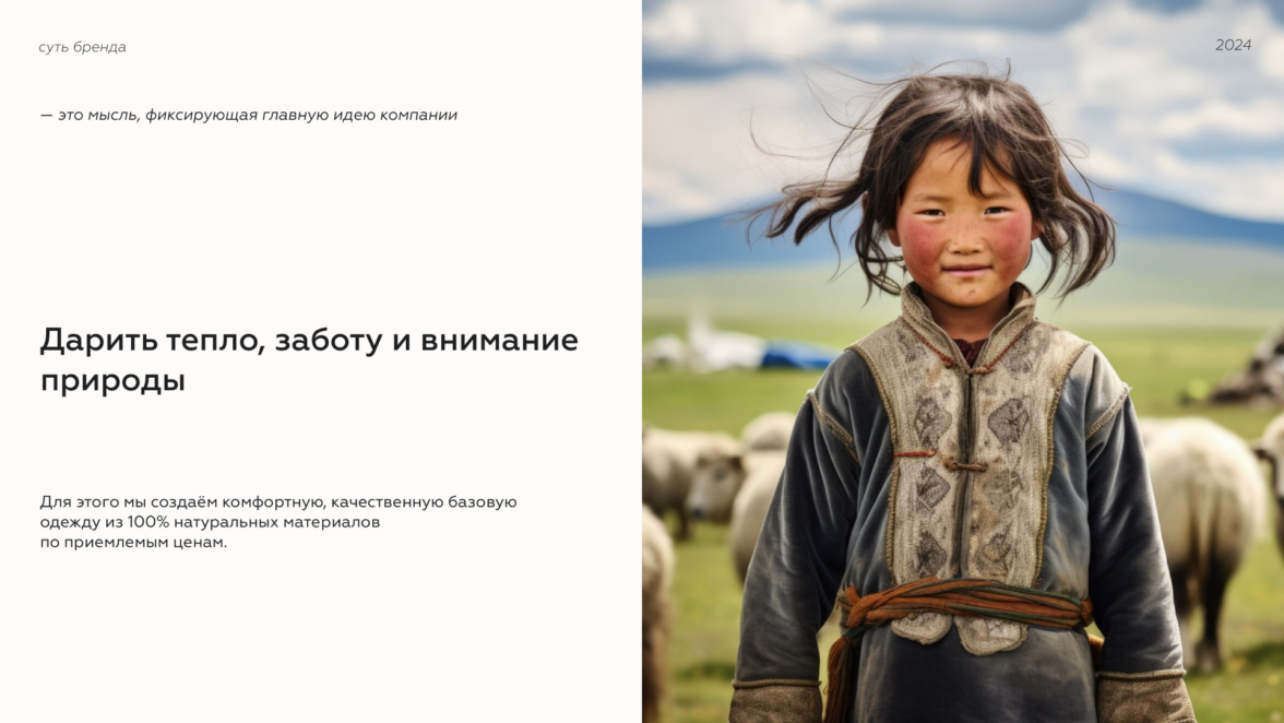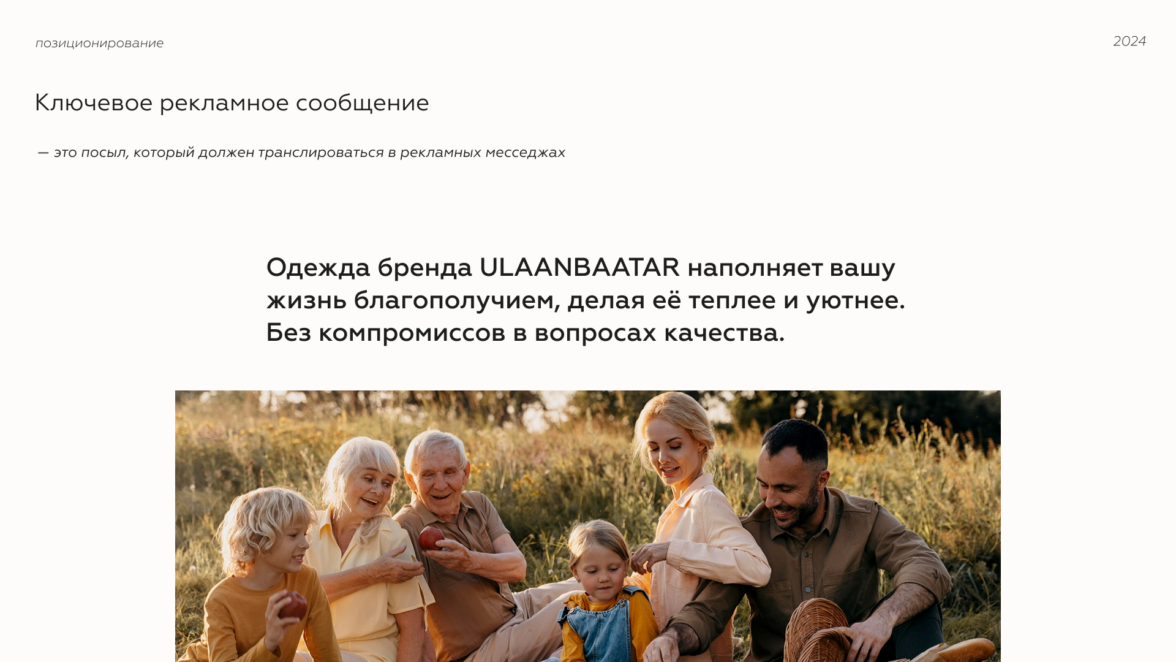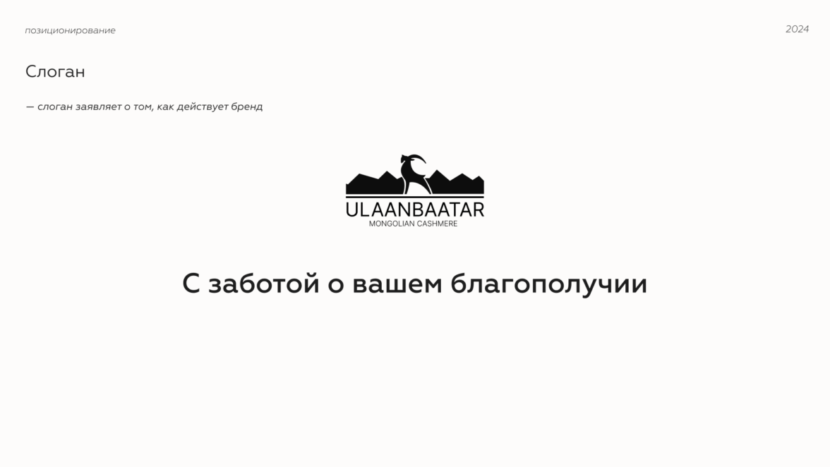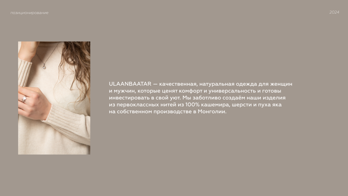 Теперь, когда мы точно представляли потенциальных клиентов бренда, мы подобрались к сути ULAANBAATAR. Это мысль, которая фиксирует главную идею компании.
