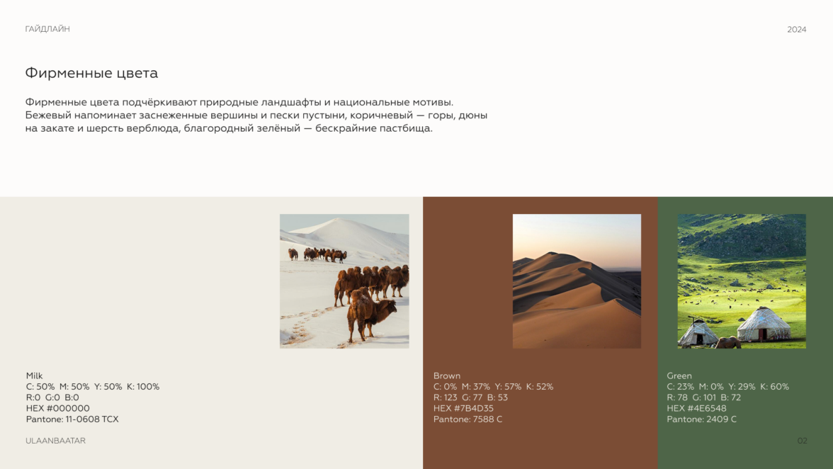 Определили фирменные цвета, вдохновленные природными пейзажами Монголии.