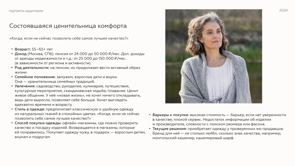 На старте провели брифинг с клиентом, чтобы погрузиться в бизнес. Продукт клиента — это мягкая, приятная к телу и вневременная одежда и товары уюта из кашемира, пуха, шерсти яка и верблюда для женщин и мужчин, которые ценят качество, комфорт и универсальность.