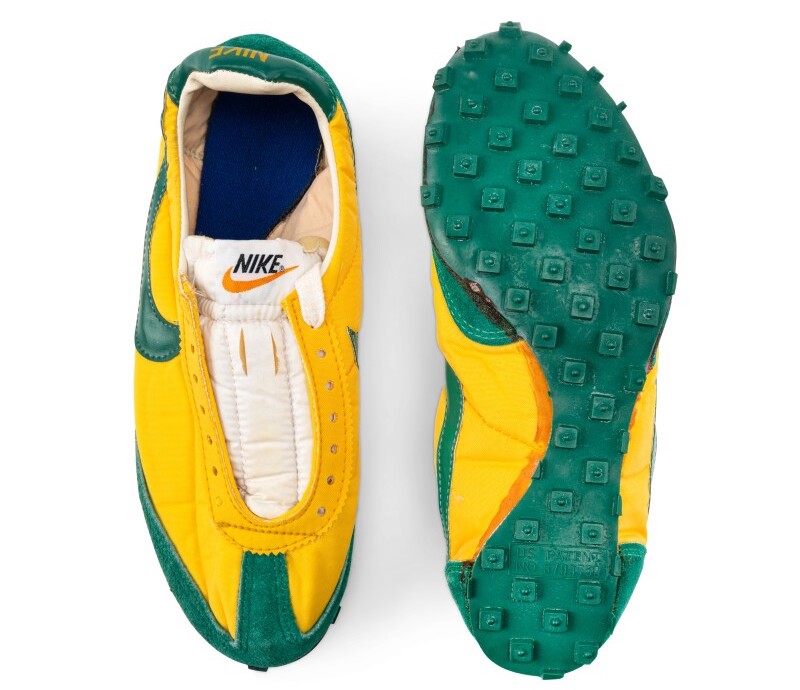 • Первая инновация относится к 1971 году. Обстоятельства ее появления курьезны. Бауэрман и его жена любили готовить вафли на завтрак в вафельнице. Это натолкнуло их на мысль нанести методом вулканизации характерный выпуклый рисунок на подошву кроссовок. Рифление по идее должно было обеспечивать лучшее сцепление кроссовок с беговыми дорожками. На самом деле это была эффектная маркетинговая идея. Технология Nike Waffle Trainer была запатентованный в 1974 году и принесла акционерам первые миллионы долларов.