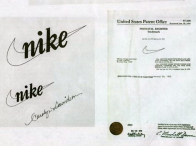 • Галочка Nike была нарисована студенткой орегонского университета Кэролин Дэвидсон всего за $35. Разбогатев, Найт подарил ей именной перстень Nike с бриллиантами и небольшой пакет акций компании.