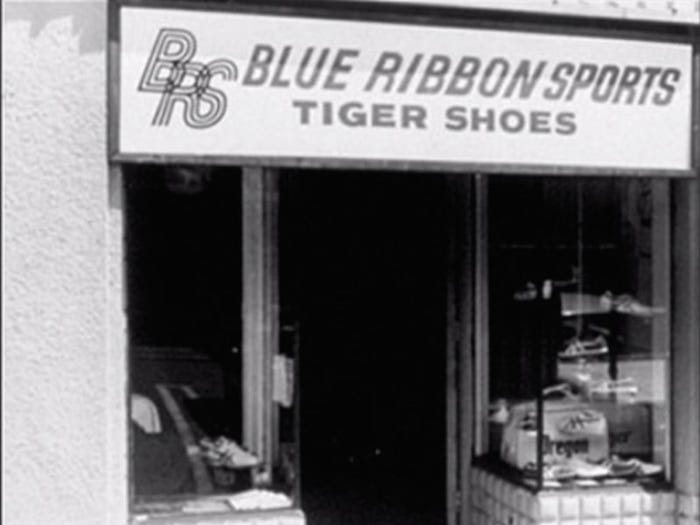 • Компания была основана в 1964 году и называлась Blue Ribbon Sports. Первоначально занималась дистрибуцией японской обуви от Onitsuka Tiger — будущего Asics. Только через 14 лет она переименовалась в Nike Inc.
