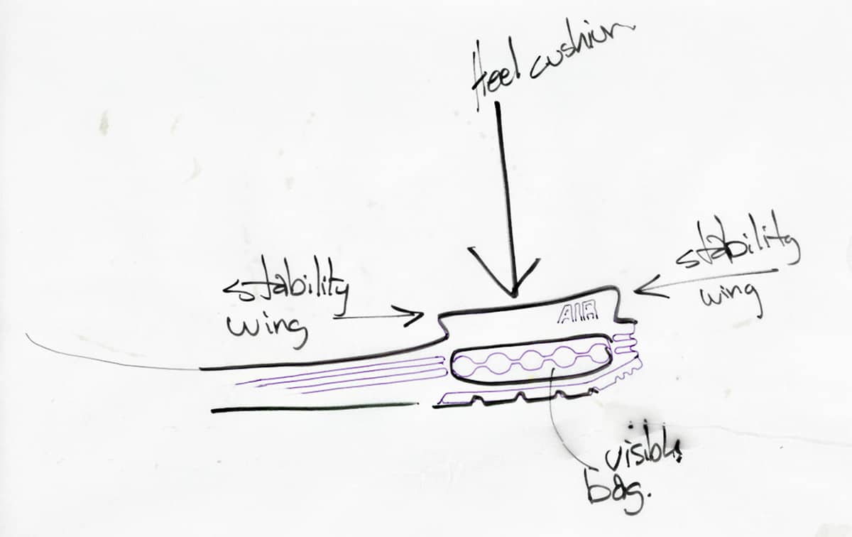 С начала применения новой технологии Air в спортивной обуви Nike емкости с газом были не видны. Все изменилось с появлением первых Nike Air Max. Их прообраз был нарисован Хэтфилдом, которому пригодился архитектурный опыт, еще в 1985 году.