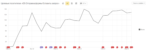 Решение: Целевая аудитория очень узкая и даже с детальной проработкой поисковых запросов сложно настроить рекламу настолько точечно. Выборка клиентов, которые в итоге что-то купили, по сравнению с числом кликов и оставленных заявок очень небольшая. Из-за этого ориентироваться на данные о такой маленькой группе покупателей было нерелевантно.
