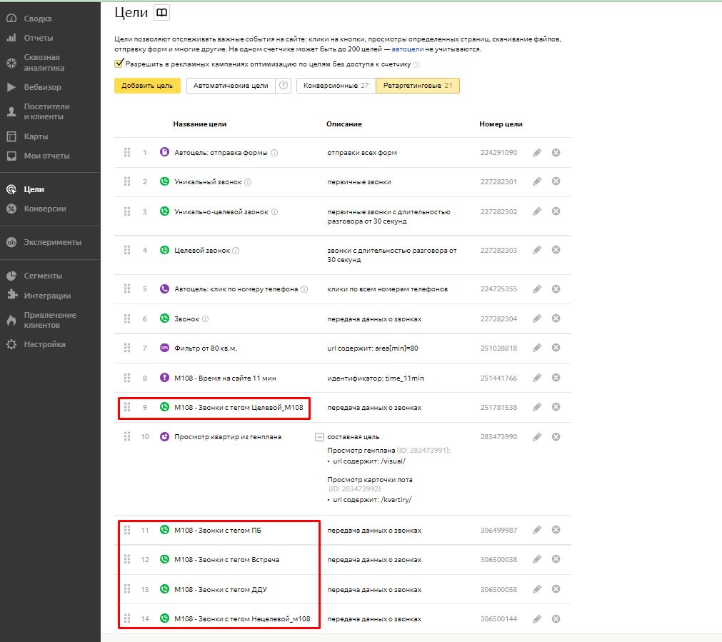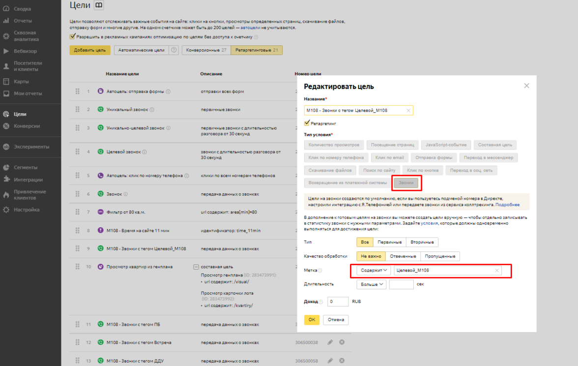 M108 — Звонки с тегом Целевой_М108